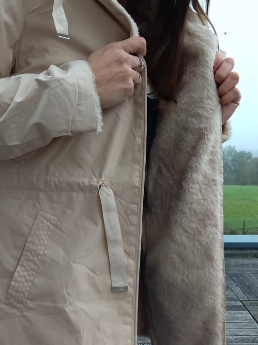New Lolo - Manteau long beige fourré complet réversible imperméable