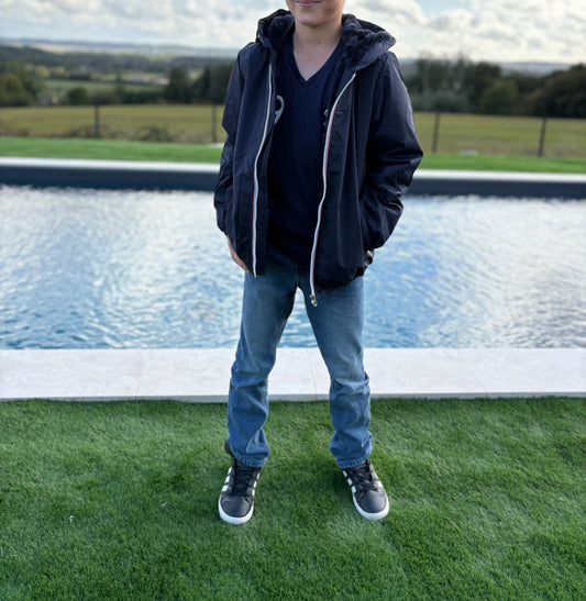 Laura Jo - ENFANT (Mixte) Imperméable court doublé en fausse fourrure bleu marine