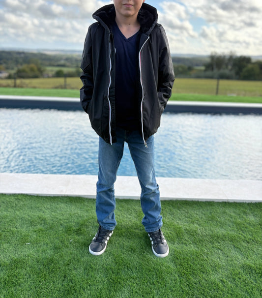 Laura Jo - ENFANT (Mixte) Imperméable court doublé en fausse fourrure Noir