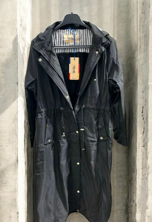 Laura Jo - Imperméable long doublé en fausse fourrure couleur noir
