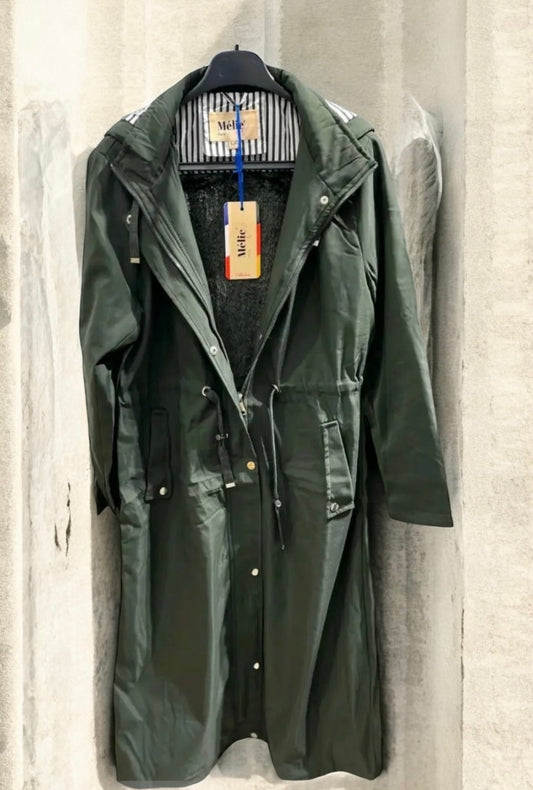 Manteau long hauteur genoux kaki fourré complet imperméable