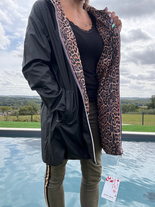 New Lolo - Imperméable réversible long sans garnissage ouate couleur noir/léopard