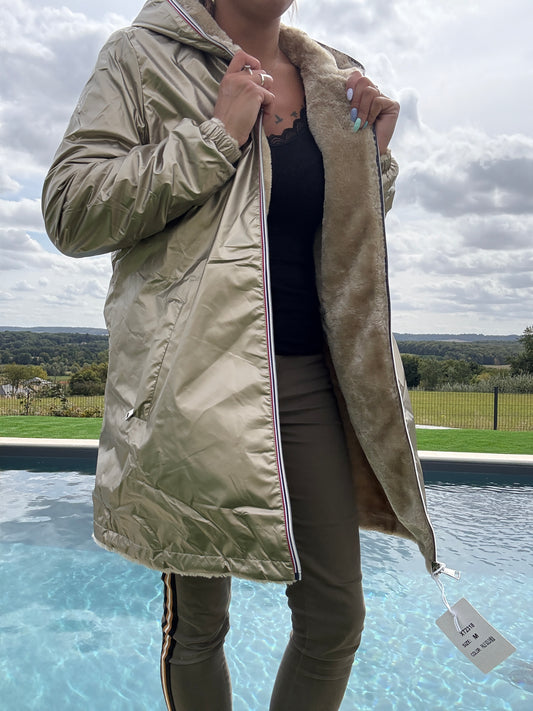 New Lolo - Manteau long doré réversible imperméable fourré fausse fourrure