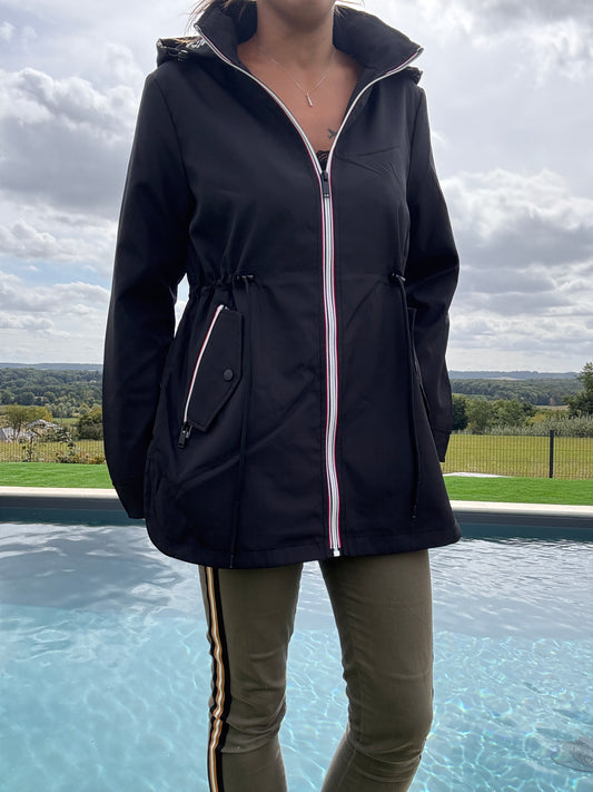 New Lolo - Manteau mi long deperlant léger noir capuche intérieur marin rayé noir blanc