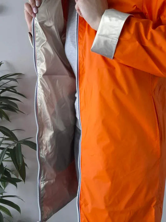 Laura Jo - Imperméable réversible long sans garnissage ouate couleur orange doré