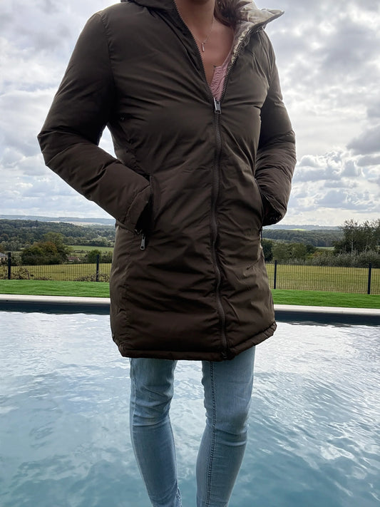 Melya Melody - Manteau long réversible et imperméable matelassé kaki marron/léopard