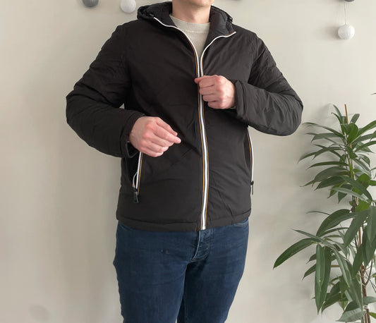 Doudoune à capuche HOMME courte imperméable et réversible matelassé noir