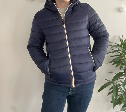 Doudoune à capuche HOMME courte imperméable et réversible matelassé bleu marine