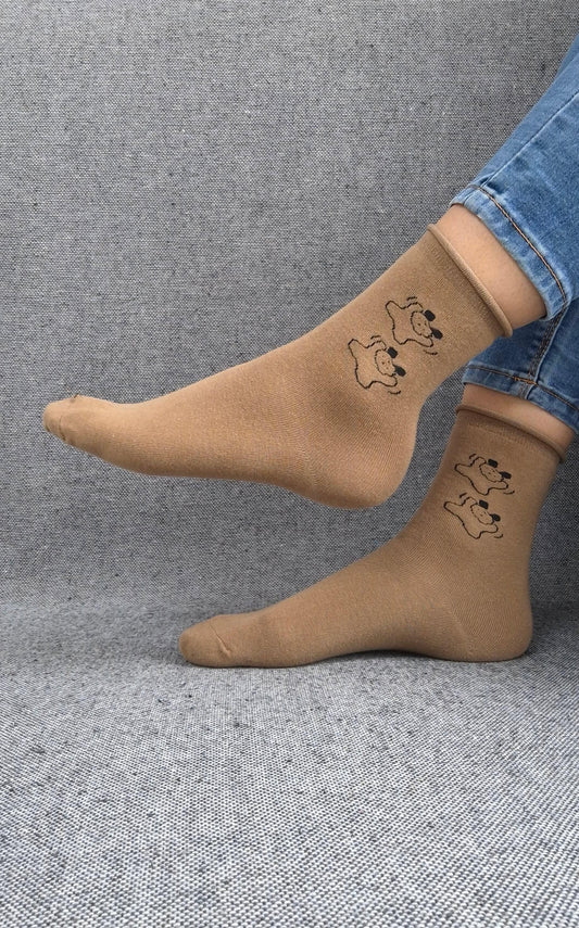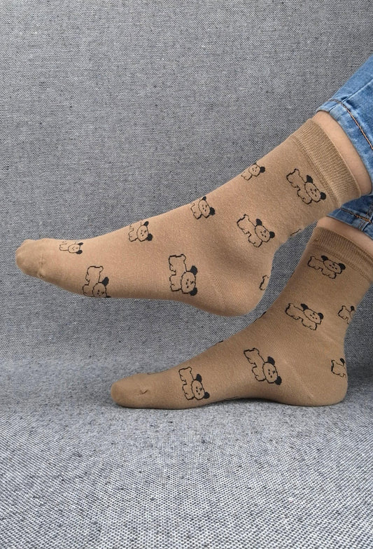 Paire de chaussettes marrons en coton à motifs chiens noirs