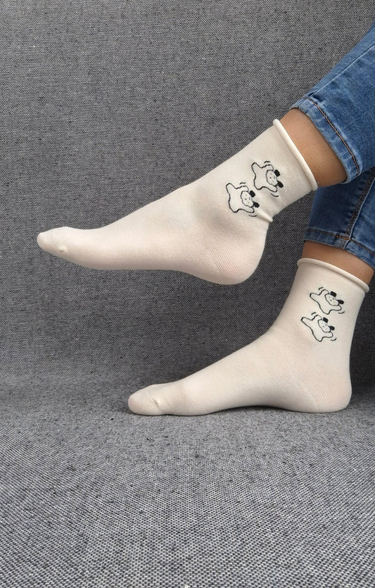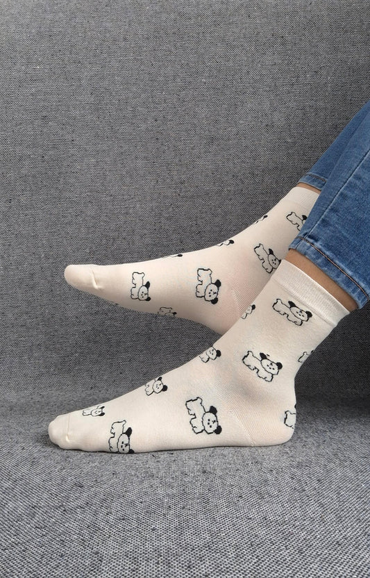 Paire de chaussettes blanches en coton à motifs chiens noirs