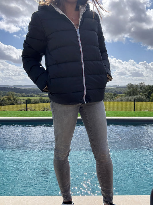 Doudoune manteau imperméable court réversible matelassé bleu marine doré