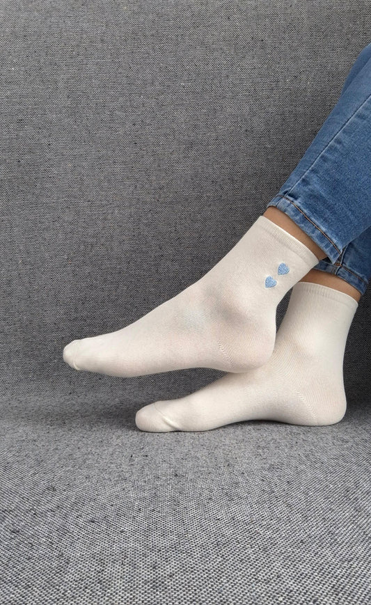 Paire de chaussettes blanches en coton à motif cœurs bleus