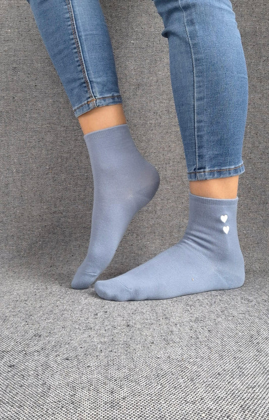 Paire de chaussettes bleues en coton à motif cœurs blancs