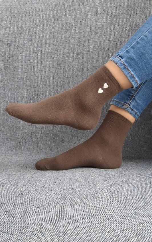 Paire de chaussettes marron en coton à motif cœurs blancs