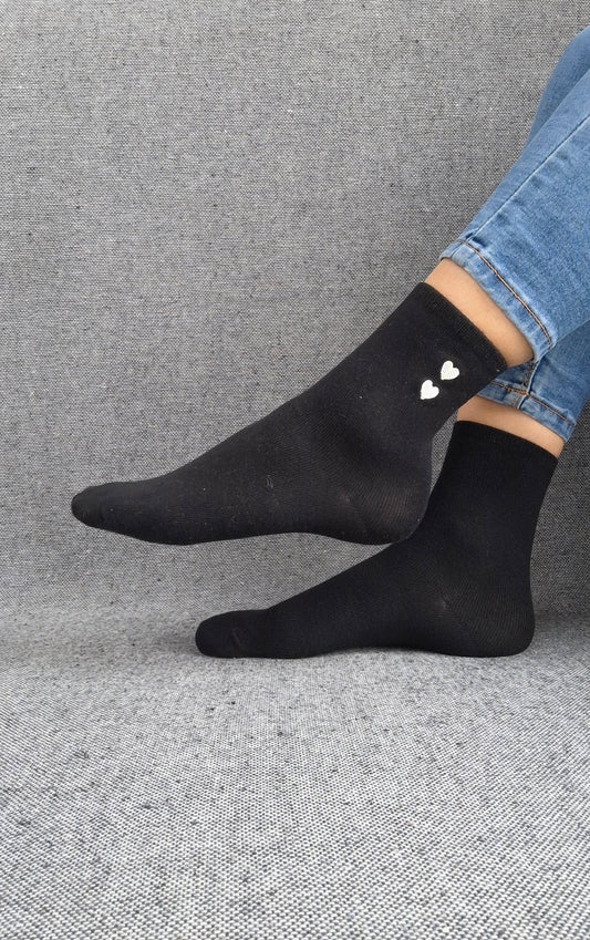 Paire de chaussettes noires en coton à motif cœurs blancs