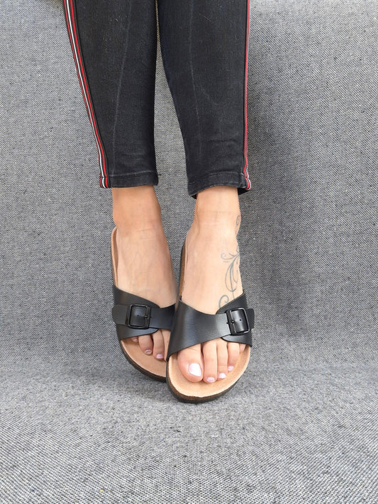 Chaussures sandales intérieur cuir bleu marine style Birk
