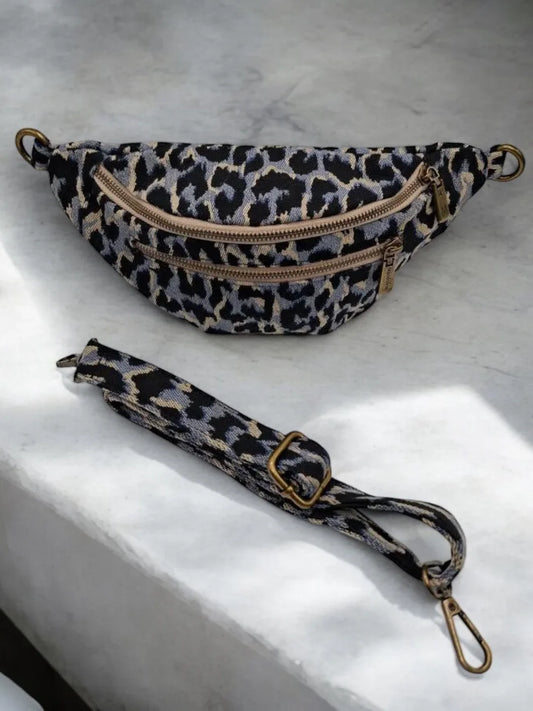 Sac banane en tissu à motif léopard bleu 2 poches