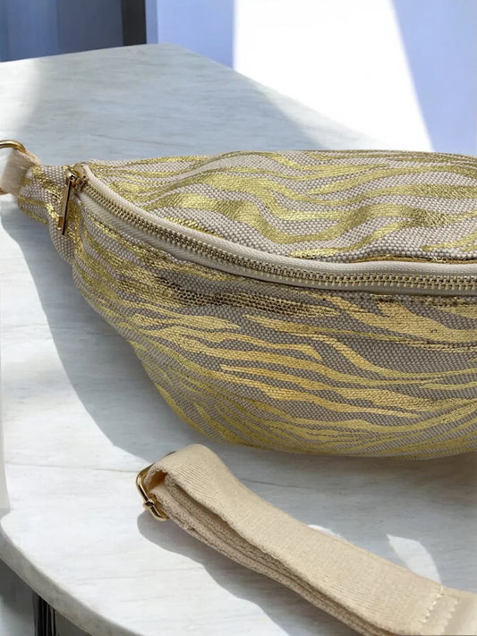 Sac banane XL tissu motif zebre doré beige