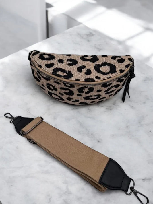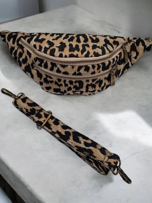 Sac banane en tissu à motif léopard camel 2 poches
