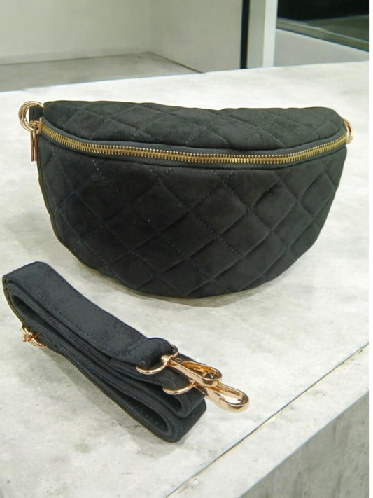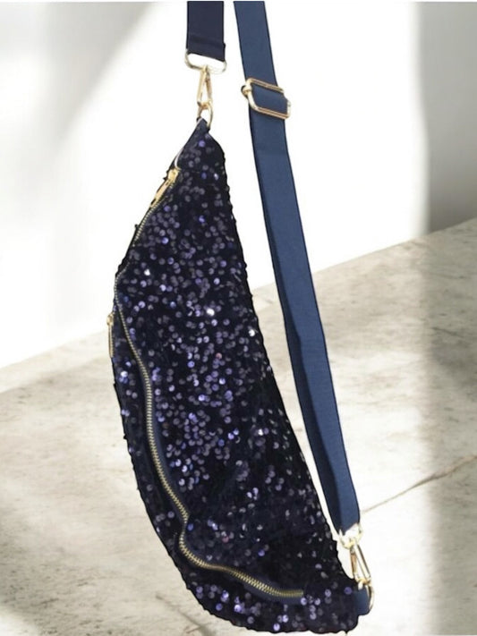 Sac banane XXL tissu velours bleu marine à sequins bleu marine deux poches