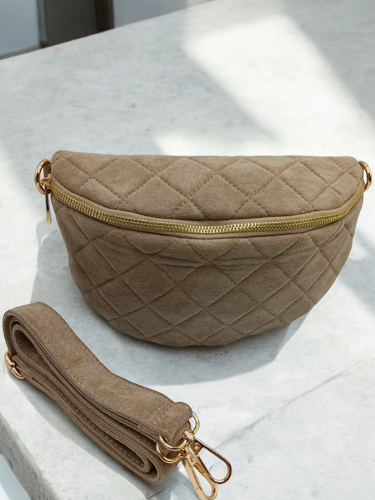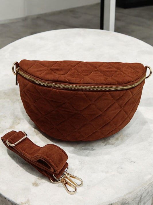 Sac banane velours côtelé 2 curseurs en cuir marron chocolat