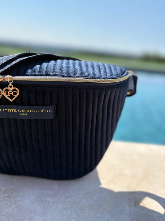 Sac banane en velours côtelé bleu marine “La P’tite cachottière”