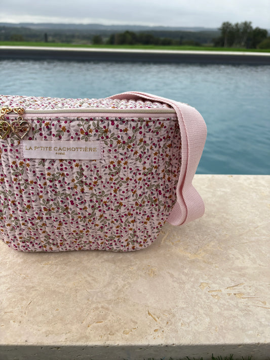 Sac banane en coton matelassé liberty baies rose crème « La Ptite cachottière »