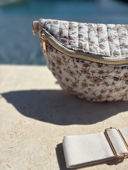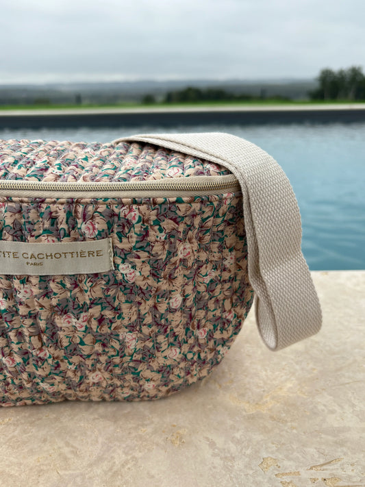 Sac banane en coton matelassé liberty fleuri beige taupe
