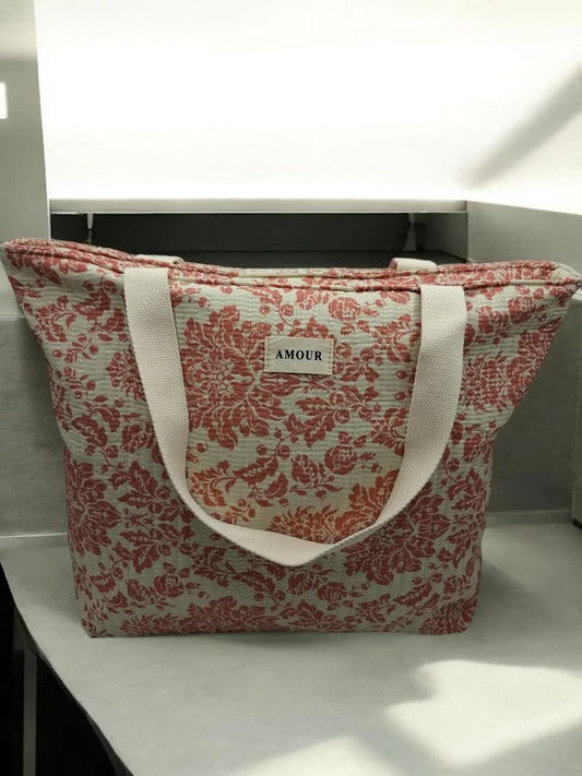 Sac cabas porté épaule en coton liberty fleuri corail crème