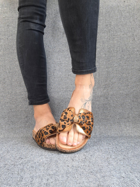 Chaussures sandales intérieur cuir motif léopard style Birk