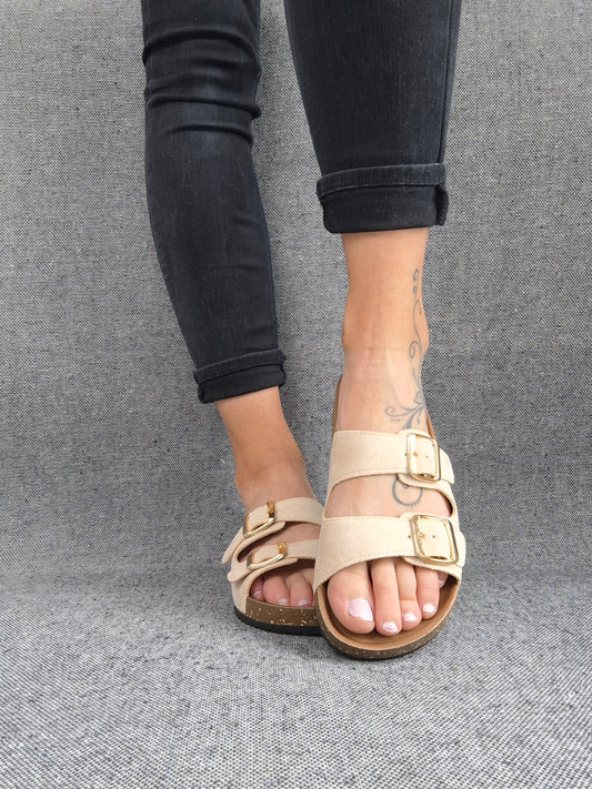 Chaussures sandales type Birk beige clair 2 brides