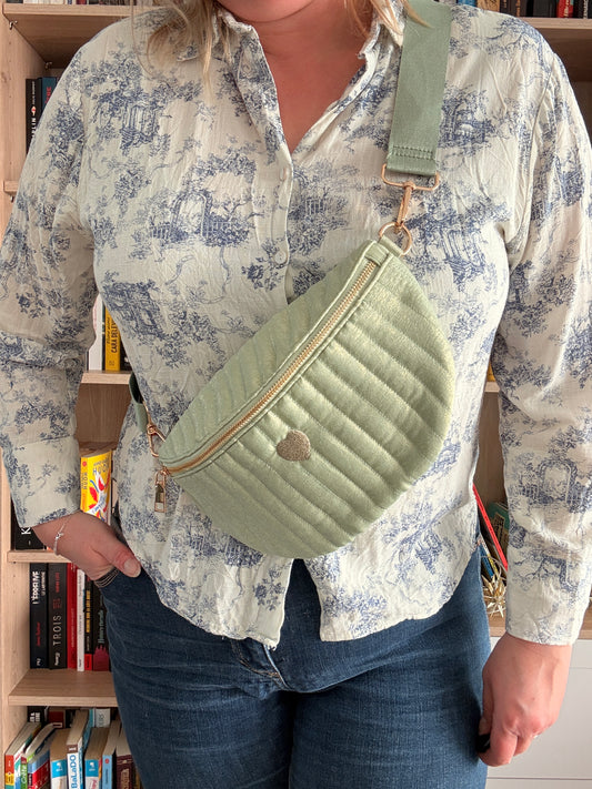 Riñonera Verde Agua Iridiscente - Textura Brillante Corazón Dorado Mujer