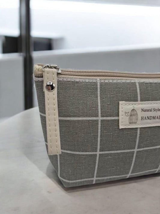 Trousse en coton motif à carreaux blancs sur un fond gris