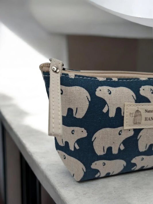 Trousse en coton motif ours polaires blancs sur fond bleu
