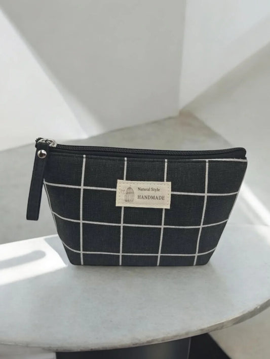 Trousse en coton motif à carreaux blancs sur un fond noir