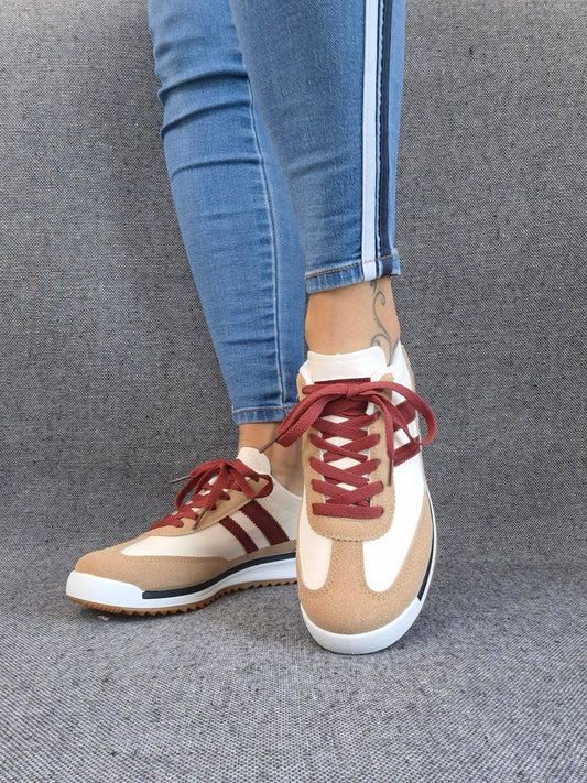 Chaussures baskets basses blanc et marron bordeaux style sneakers