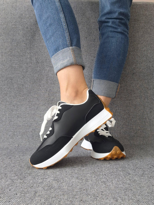 Chaussures baskets basses tendance beige noir et blanc style sneakers