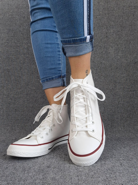 Chaussures baskets hautes en toile bleu clair blanc style converse