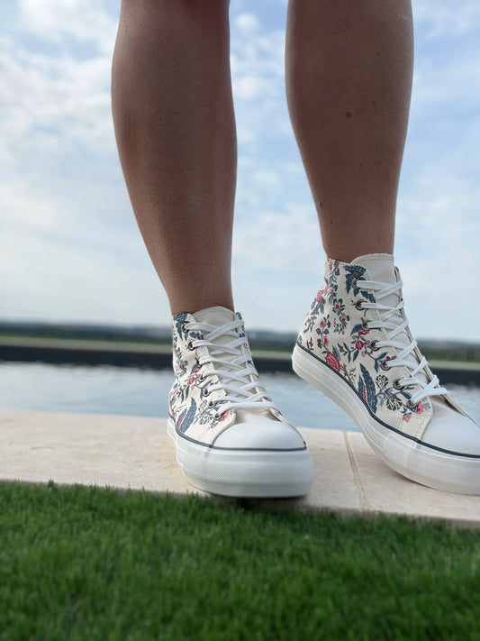 Chaussures baskets hautes en toile motif liberty floral style converse