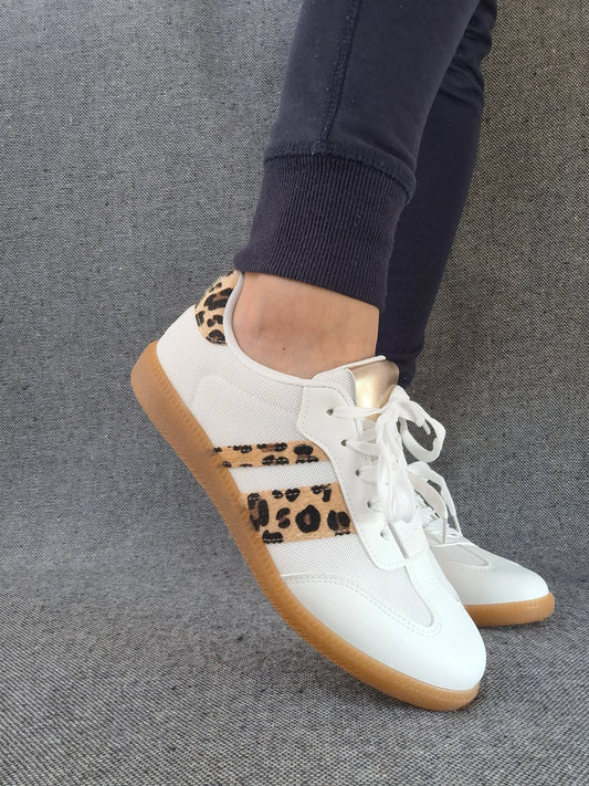 Chaussures baskets plates blanches à motif léopard style sneakers