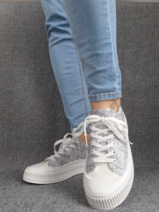 Chaussures baskets basses grises à rayures blanches style sneakers
