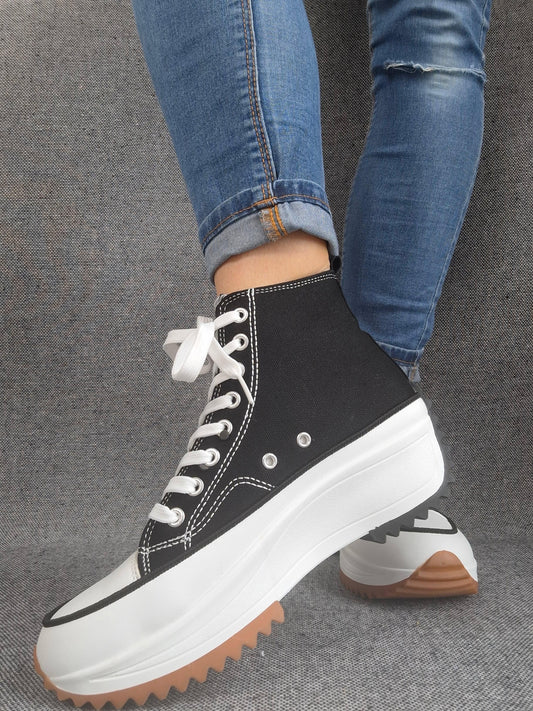 Chaussures baskets haute plate-forme toile noir et blanc