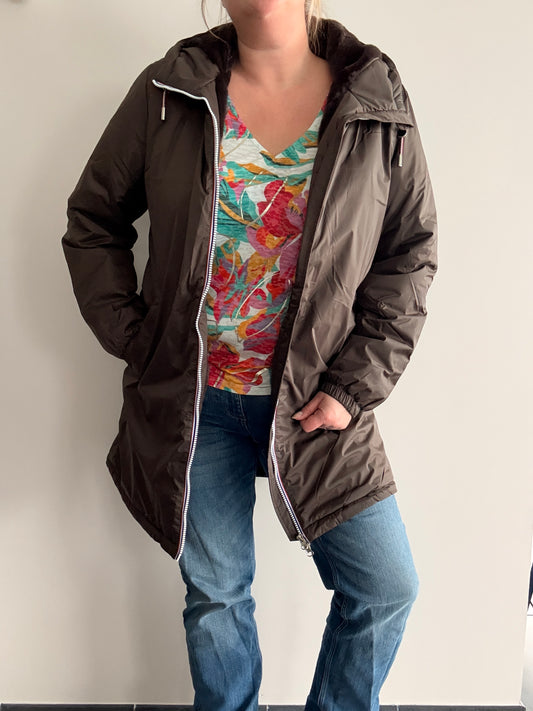 Laura Jo - Parka réversible court avec garnissage ouate couleur kaki/kaki brillant zip uni