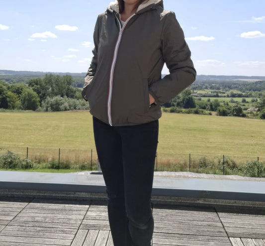 Laura Jo - Imperméable réversible court mi-saison garnissage ouate kaki / doré