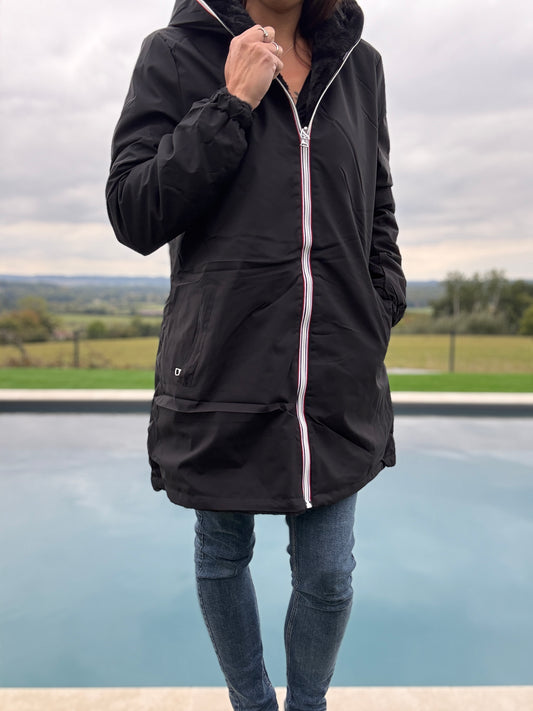 New Lolo - Manteau long noir fourré complet réversible imperméable
