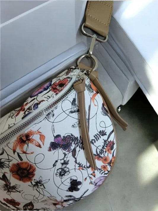 Sac banane simili cuir fleuri multicolore et taupe