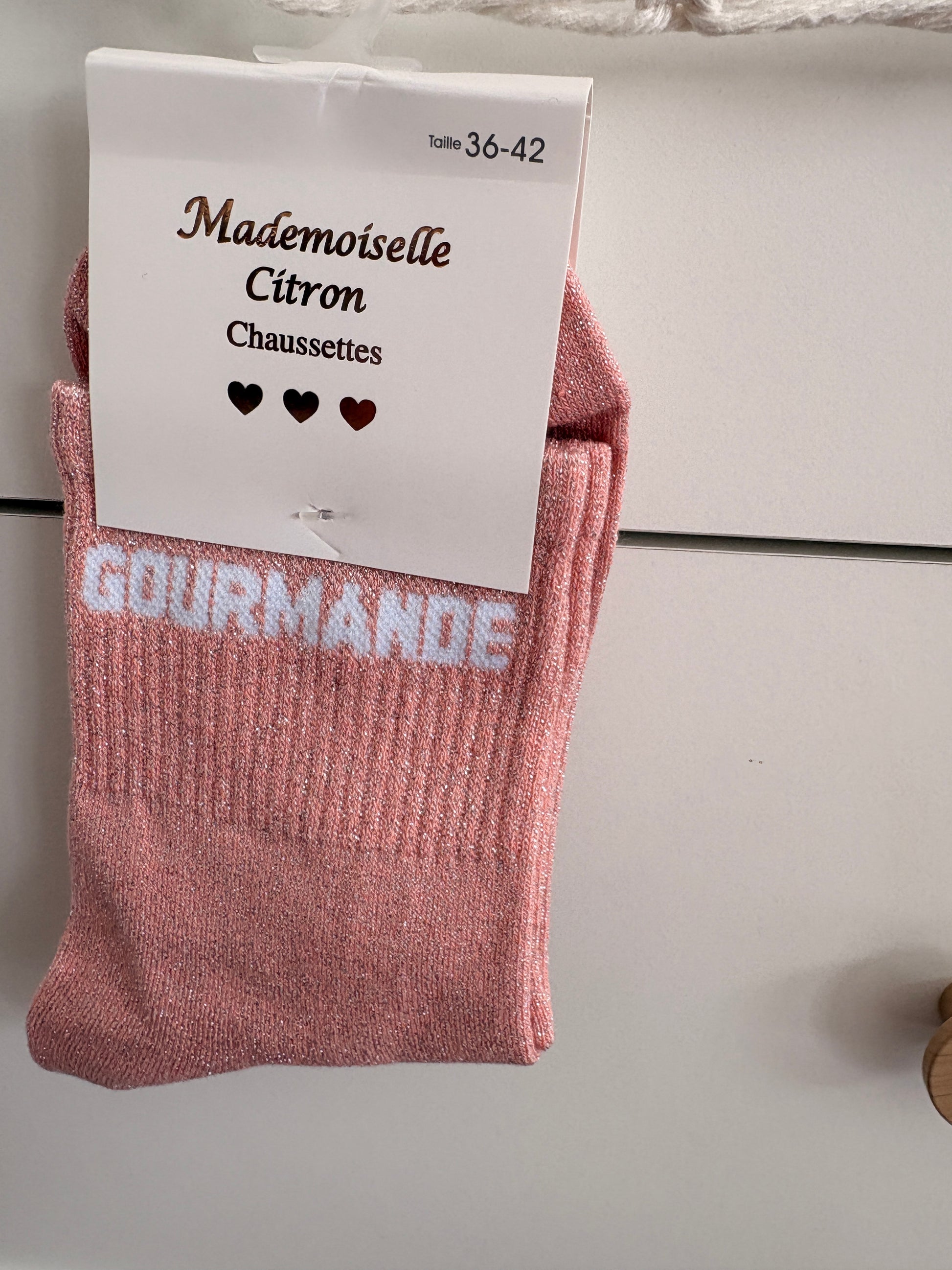 Chaussettes hautes pailletées “Gourmande”