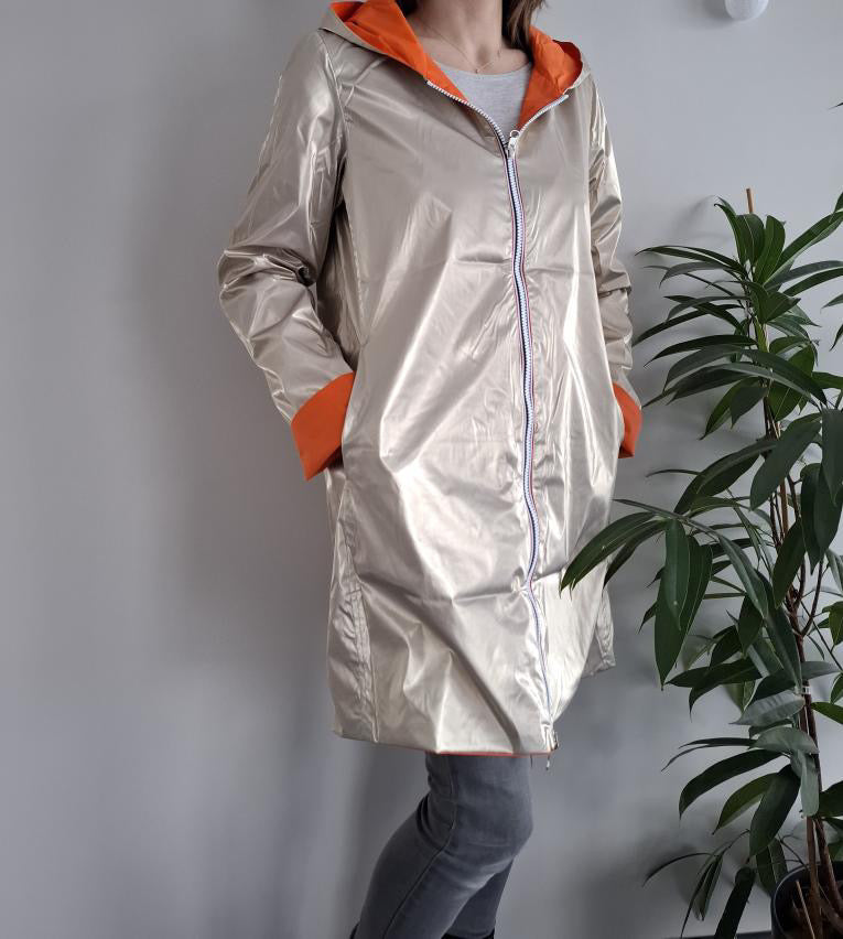 Laura Jo - Imperméable réversible long sans garnissage ouate couleur orange doré