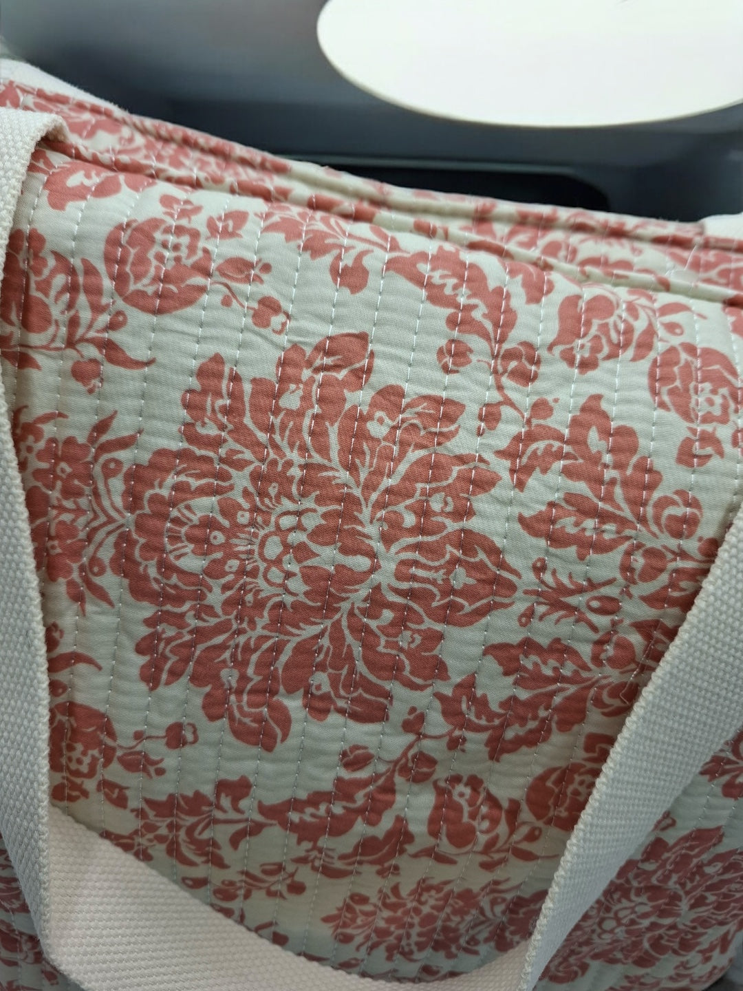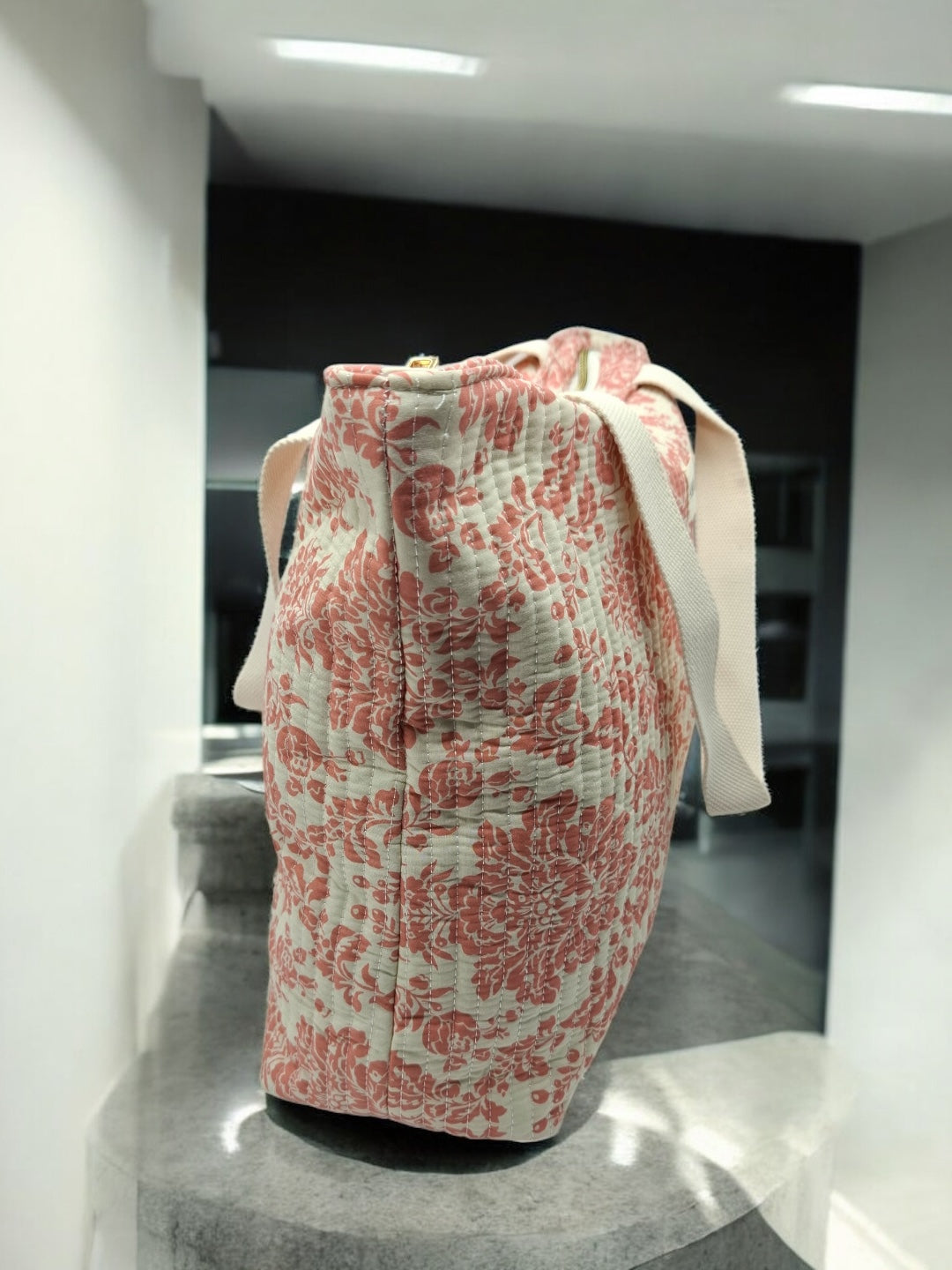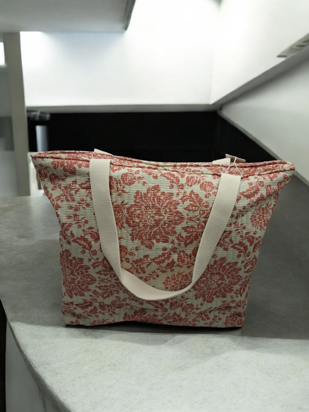 Sac cabas porté épaule en coton liberty fleuri corail crème