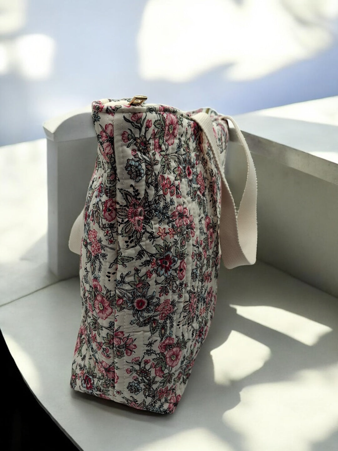 Sac cabas porté épaule en coton liberty fleuri noir rose crème